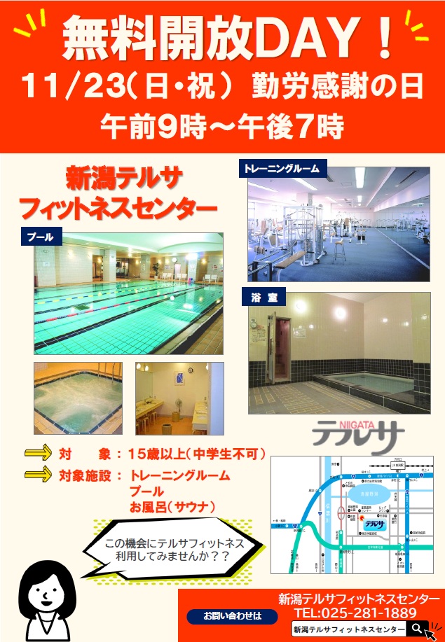 11/23(日・祝) フィットネスセンター無料開放DAY
